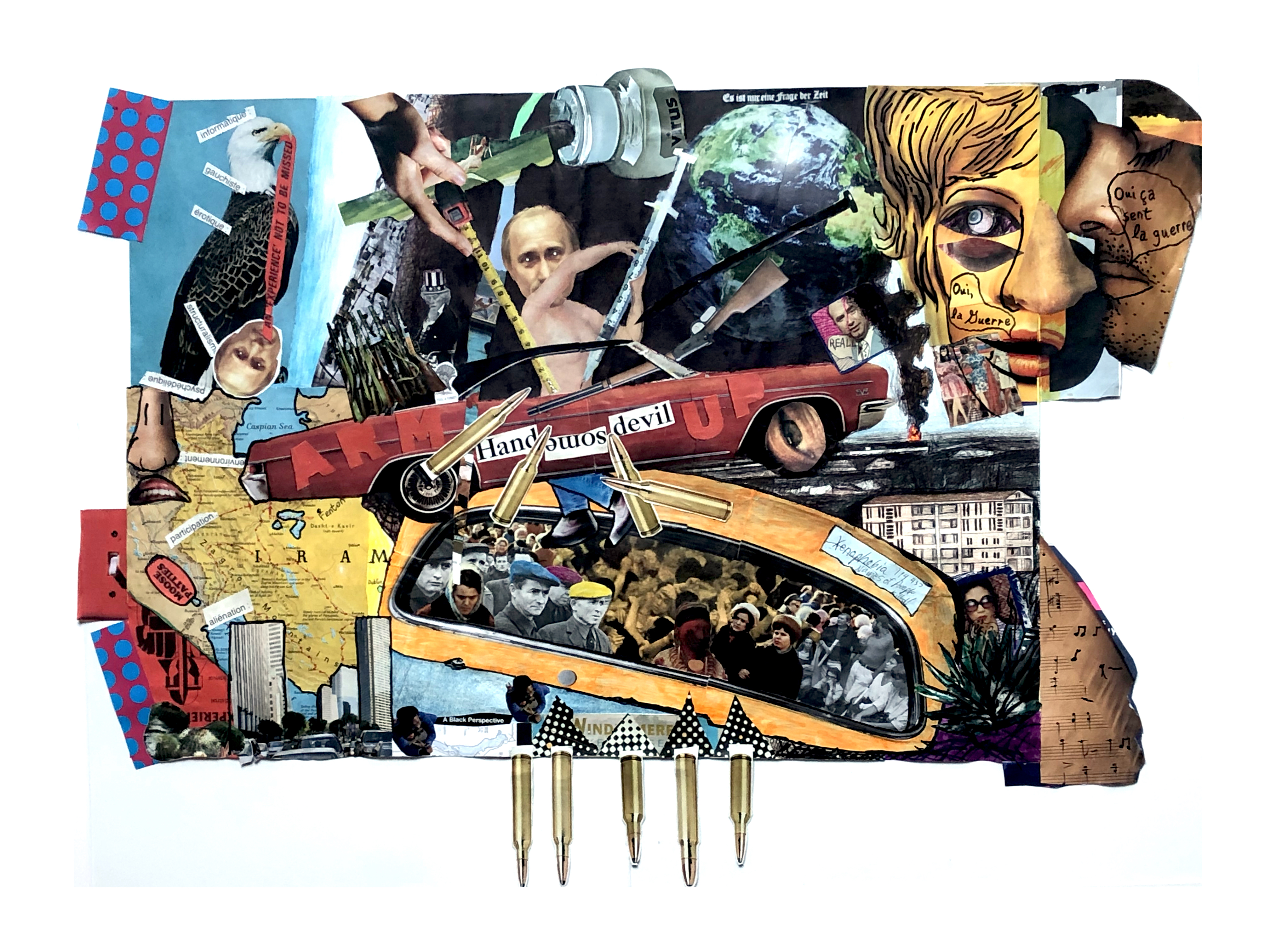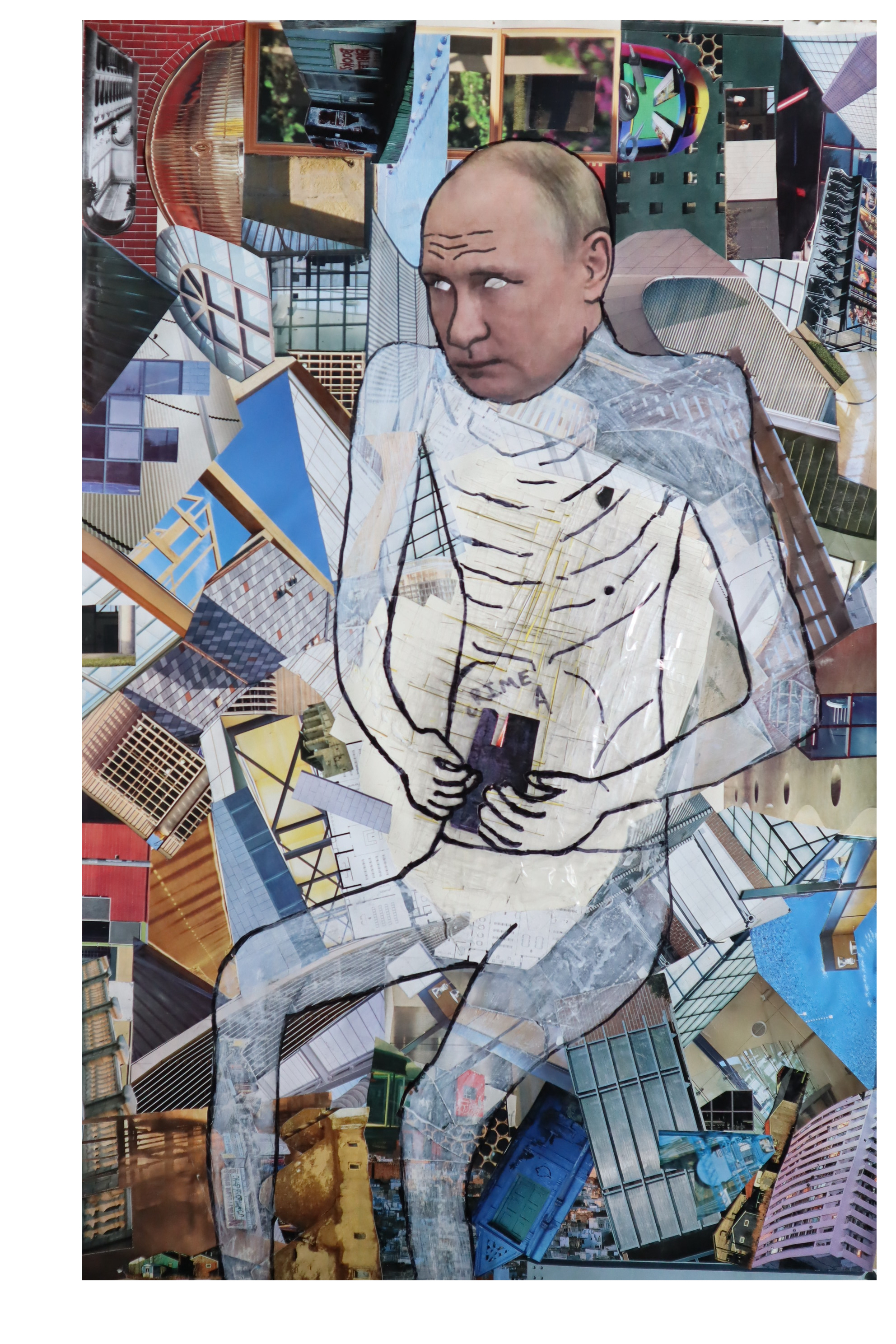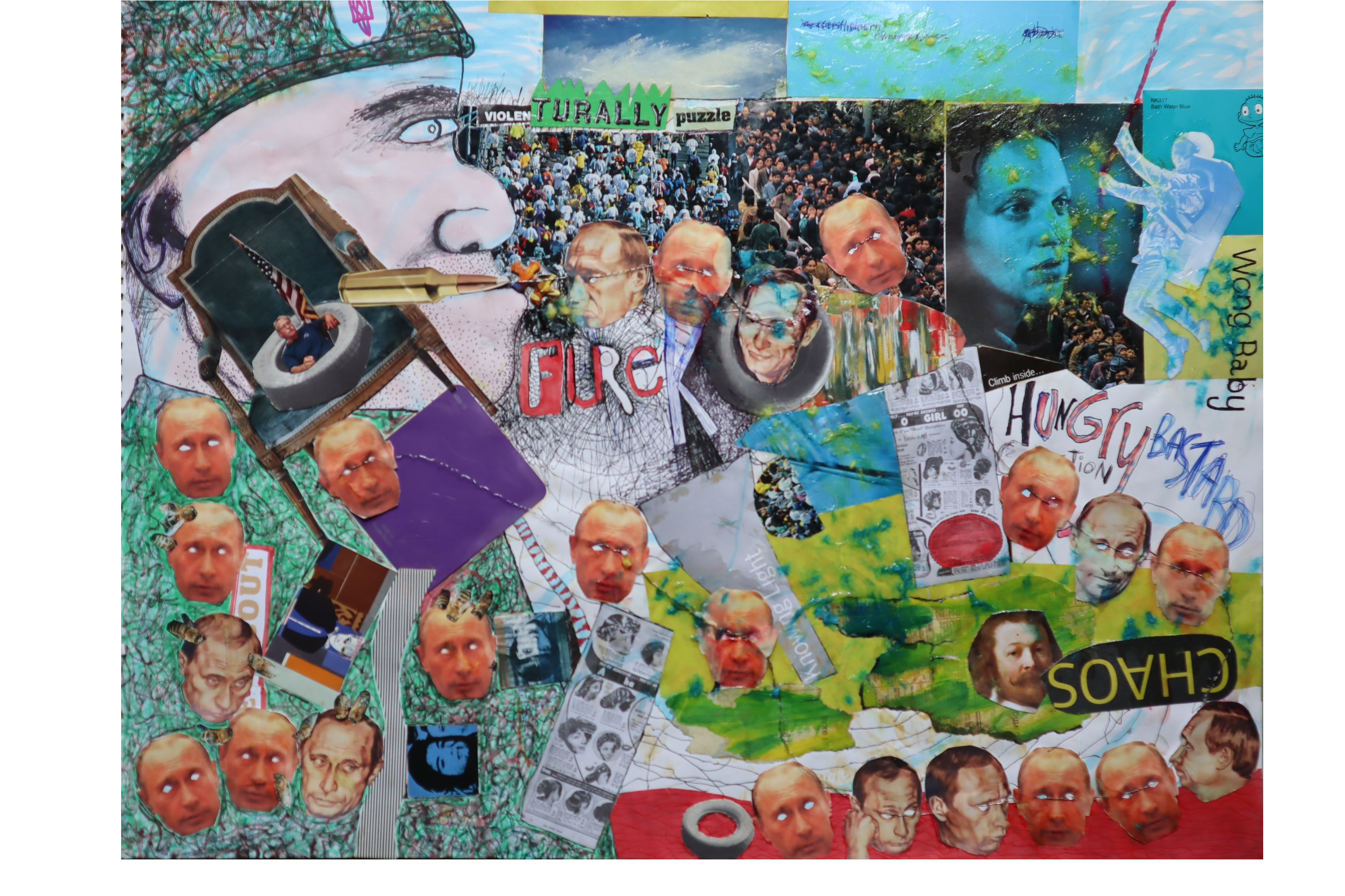 The Dear Mr. Putin… project is a collage/ drawing project that responds to the war between Russia and Ukraine. This project seeks to comment on the foolishness of war and the way it makes leaders of international politics look, as well as also showing the seductive side of war to the politicians who wage it.